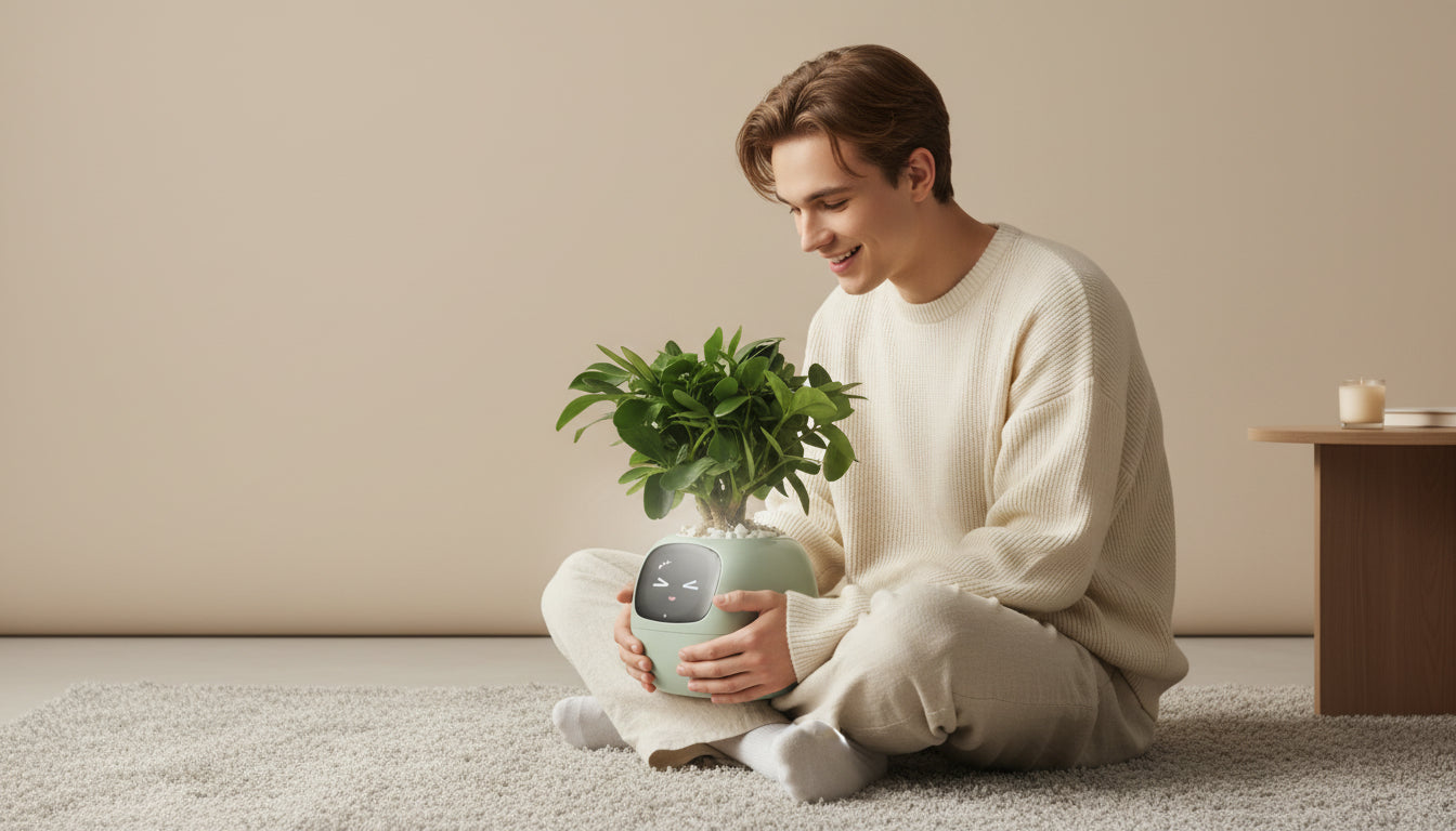 Botaniq n’est pas qu’un pot de plantes : c’est un petit compagnon plein de vie qui apporte douceur et réconfort au quotidien. Avec ses expressions adorables et son attention constante, il veille sur votre plante comme si c’était la sienne et vous fait sentir plus proche de la nature. Une présence apaisante, connectée et chaleureuse, qui trouve naturellement sa place dans votre maison.
