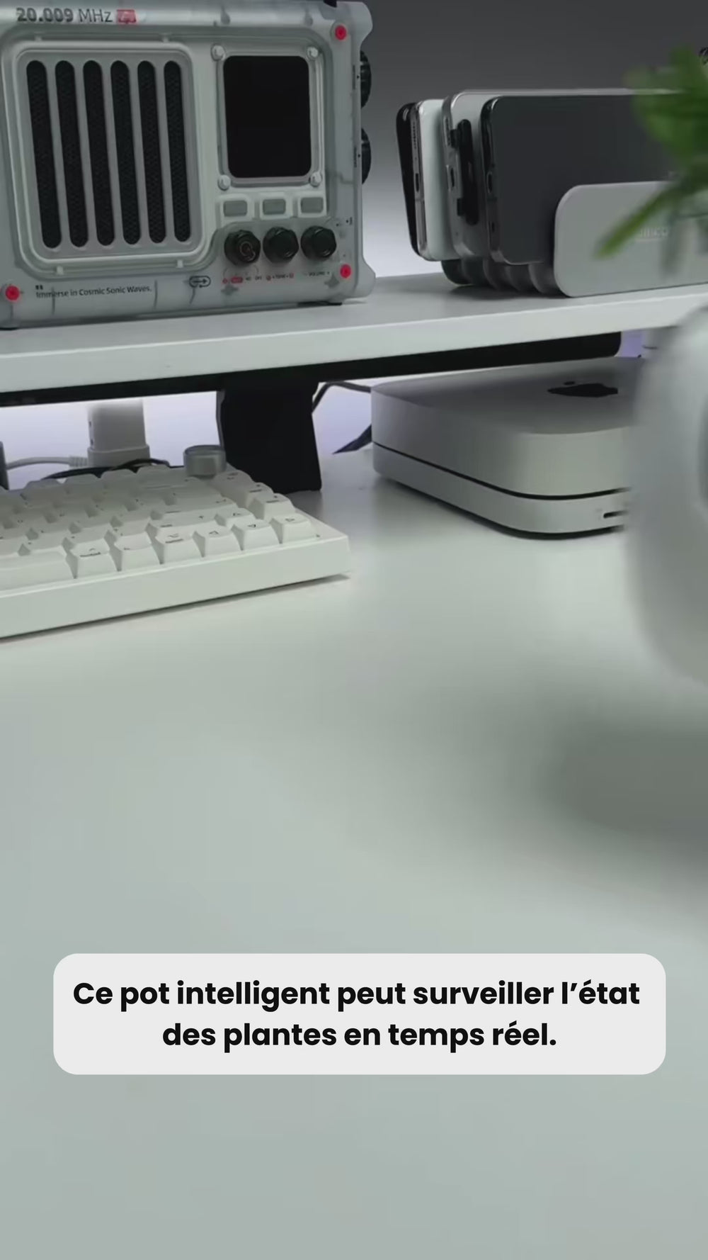 La plante intelligente nécessite un branchement discret pour afficher ses expressions numériques, mais elle consomme très peu d’énergie et fonctionne en continu pour rester attentive à ses besoins.